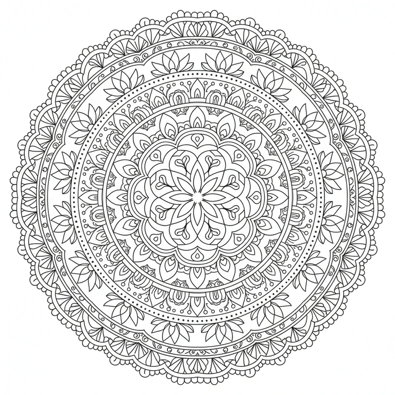 Ce design épuré offre un excellent support pour développer la concentration et la motricité fine. Les lignes claires et les espaces généreux facilitent le coloriage, même pour les plus jeunes. Téléchargez gratuitement ce mandala et profitez d'un moment créatif en famille.