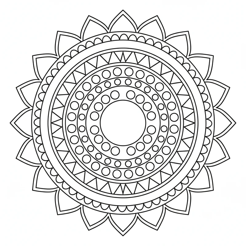 Découvrez ce mandala facile à colorier, idéal pour les débutants et les enfants. Ses grandes zones et ses formes simples permettent une prise en main rapide et un moment de détente agréable. Parfait pour s'initier à l'art du coloriage de mandalas.