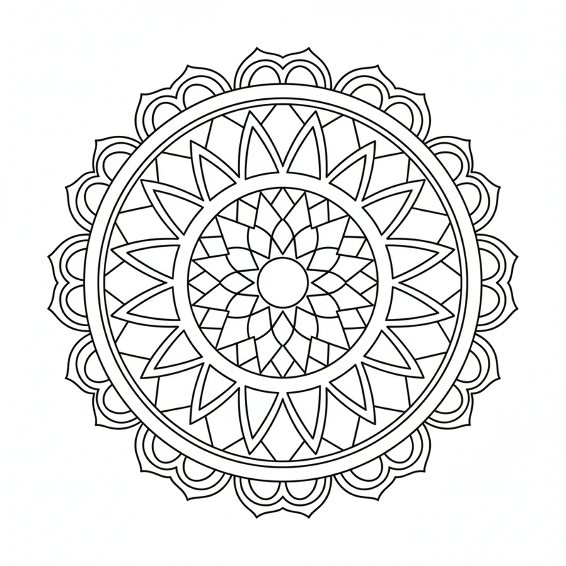 Ce design épuré offre un excellent support pour développer la concentration et la motricité fine. Les lignes claires et les espaces généreux facilitent le coloriage, même pour les plus jeunes. Téléchargez gratuitement ce mandala et profitez d'un moment créatif en famille.