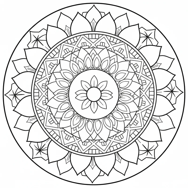 Découvrez ce mandala facile à colorier, idéal pour les débutants et les enfants. Ses grandes zones et ses formes simples permettent une prise en main rapide et un moment de détente agréable. Parfait pour s'initier à l'art du coloriage de mandalas.