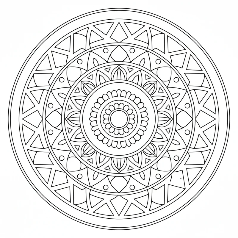 Un magnifique mandala simple aux motifs accessibles, conçu pour offrir un moment de calme et de créativité. Les formes géométriques basiques créent une harmonie visuelle apaisante, idéale pour une pause détente après une journée chargée.