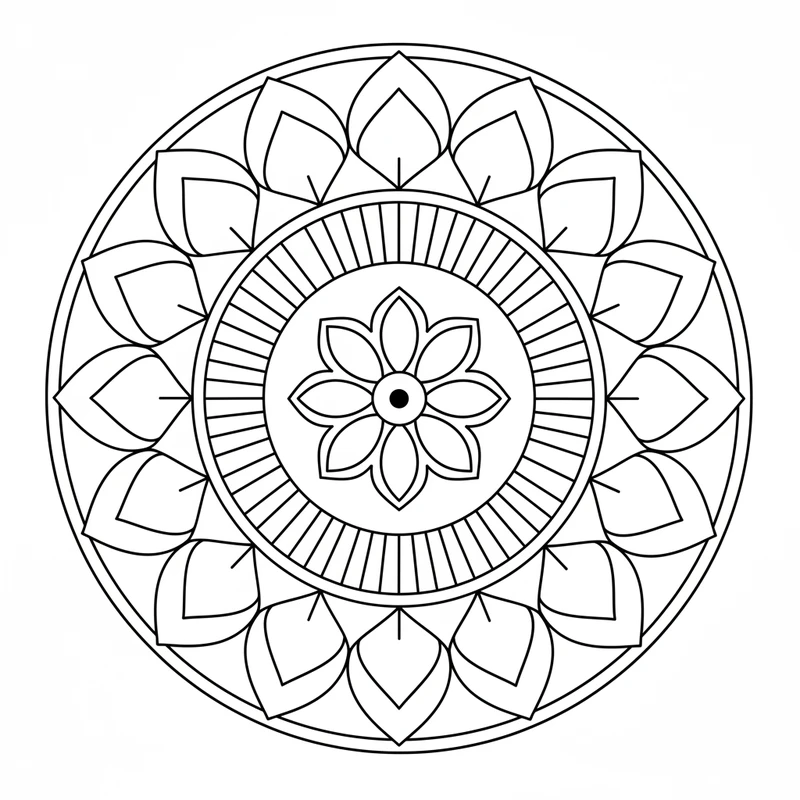 Ce coloriage mandala pour débutants combine élégance et simplicité. Imprimez-le gratuitement et laissez libre cours à votre imagination avec les couleurs de votre choix. Une activité relaxante recommandée pour gérer le stress quotidien.