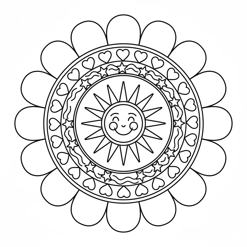 Soleil Rayons Enfants Mandala #38 - Coloriage Gratuit