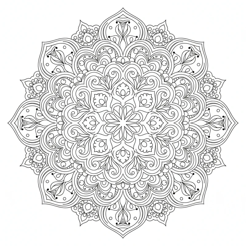 Un mandala abstrait qui repousse les limites de la créativité. Inspiré du style zentangle et des arts décoratifs, ce design offre une liberté totale dans le choix des couleurs et des techniques de coloriage.