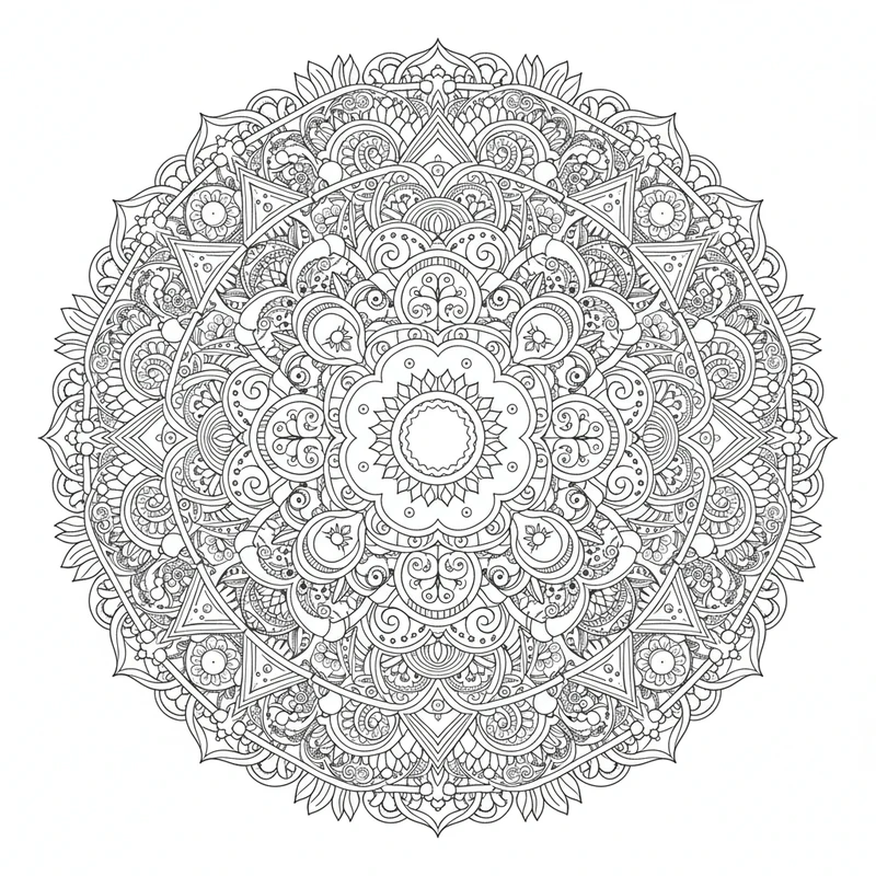 Un mandala abstrait qui repousse les limites de la créativité. Inspiré du style zentangle et des arts décoratifs, ce design offre une liberté totale dans le choix des couleurs et des techniques de coloriage.
