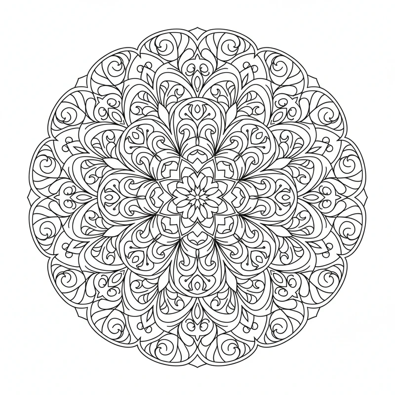 Explorez l'art abstrait avec ce mandala aux motifs créatifs et originaux. Courbes fluides et formes organiques s'entremêlent dans une composition libre qui stimule l'imagination et la créativité.