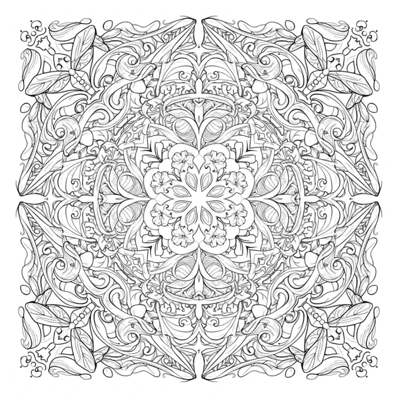 Explorez l'art abstrait avec ce mandala aux motifs créatifs et originaux. Courbes fluides et formes organiques s'entremêlent dans une composition libre qui stimule l'imagination et la créativité.