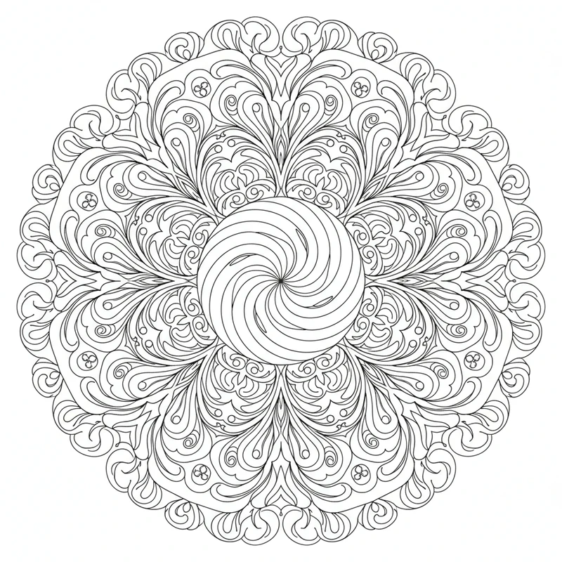 Explorez l'art abstrait avec ce mandala aux motifs créatifs et originaux. Courbes fluides et formes organiques s'entremêlent dans une composition libre qui stimule l'imagination et la créativité.
