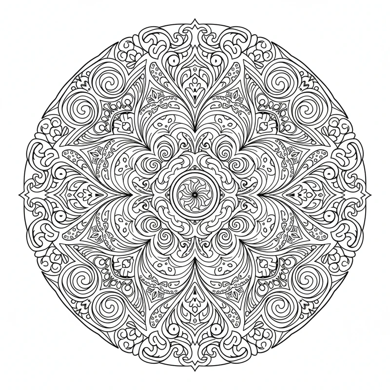 Explorez l'art abstrait avec ce mandala aux motifs créatifs et originaux. Courbes fluides et formes organiques s'entremêlent dans une composition libre qui stimule l'imagination et la créativité.