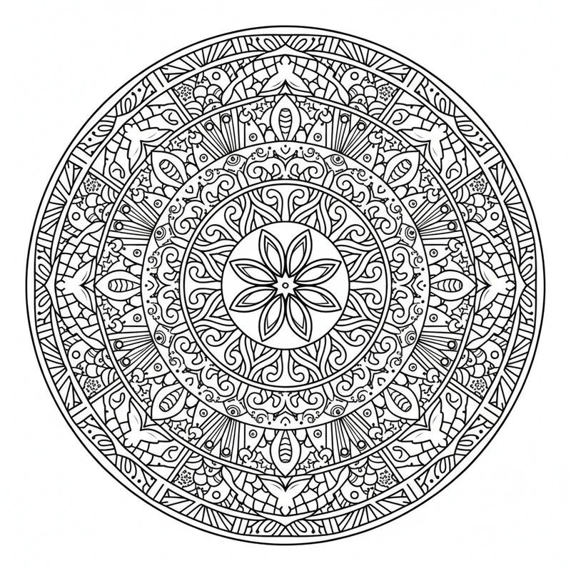 Ce design unique transcende les catégories traditionnelles du mandala. Chaque zone est une invitation à l'expérimentation chromatique. Téléchargez gratuitement ce coloriage et créez votre propre interprétation artistique.