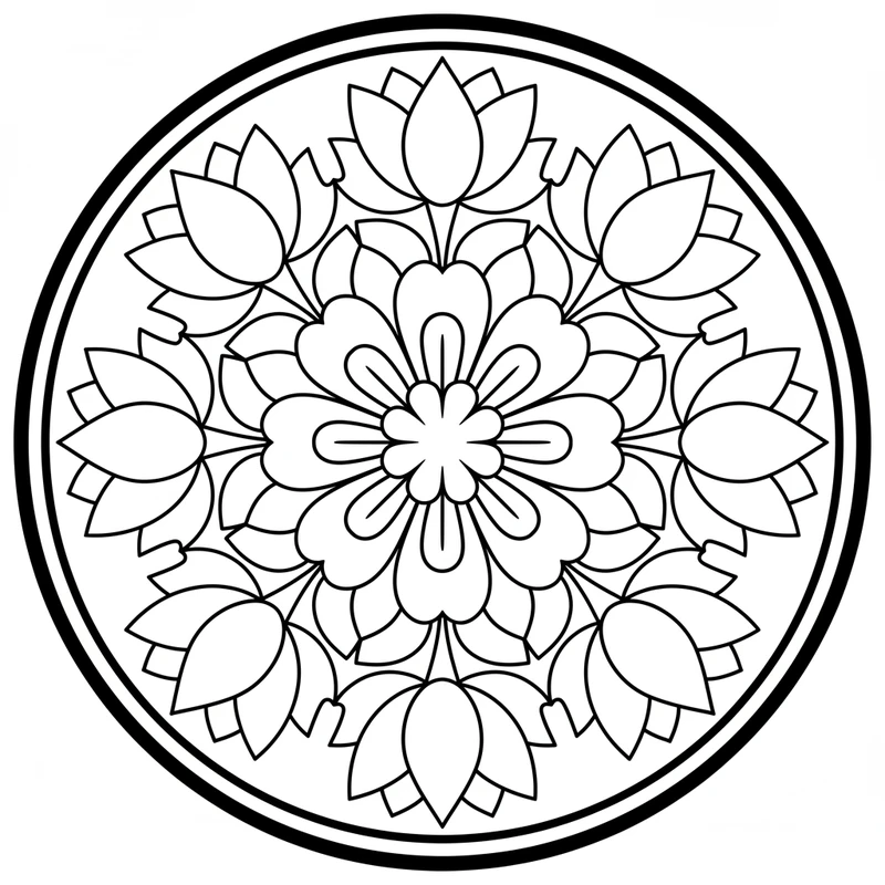 Un magnifique mandala simple aux motifs accessibles, conçu pour offrir un moment de calme et de créativité. Les formes géométriques basiques créent une harmonie visuelle apaisante, idéale pour une pause détente après une journée chargée.