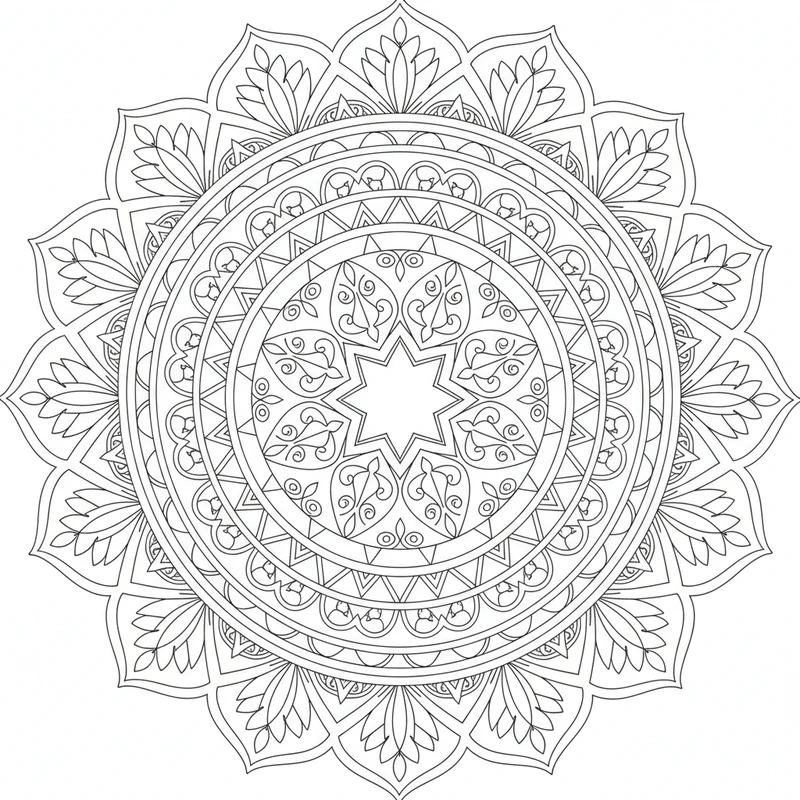 Ce design épuré offre un excellent support pour développer la concentration et la motricité fine. Les lignes claires et les espaces généreux facilitent le coloriage, même pour les plus jeunes. Téléchargez gratuitement ce mandala et profitez d'un moment créatif en famille.