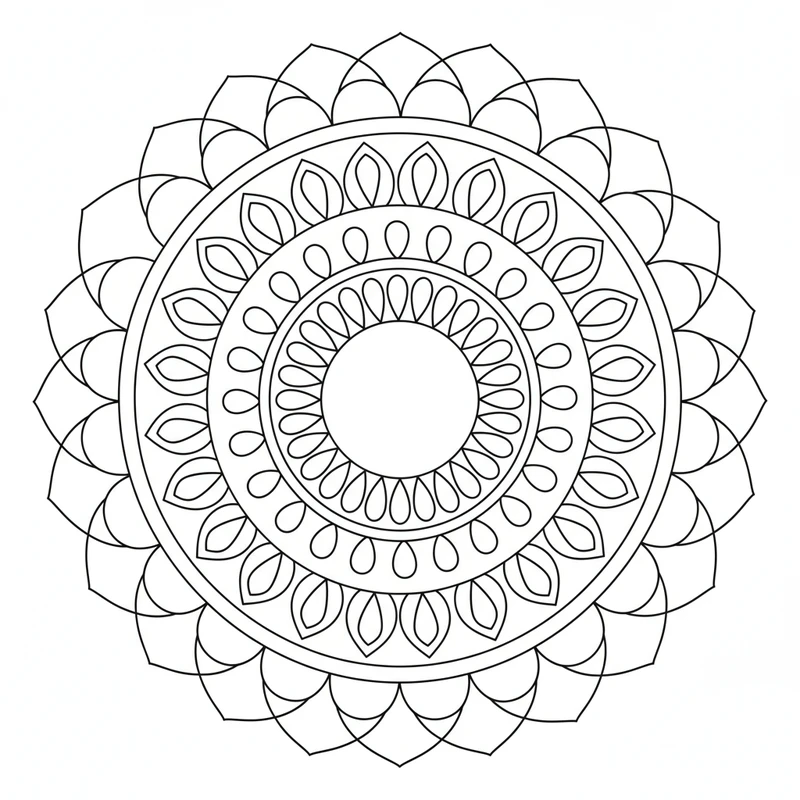 Un magnifique mandala simple aux motifs accessibles, conçu pour offrir un moment de calme et de créativité. Les formes géométriques basiques créent une harmonie visuelle apaisante, idéale pour une pause détente après une journée chargée.