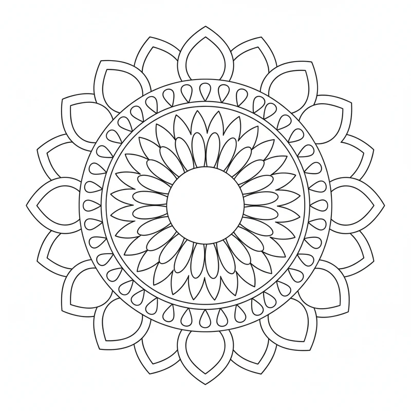 Un magnifique mandala simple aux motifs accessibles, conçu pour offrir un moment de calme et de créativité. Les formes géométriques basiques créent une harmonie visuelle apaisante, idéale pour une pause détente après une journée chargée.