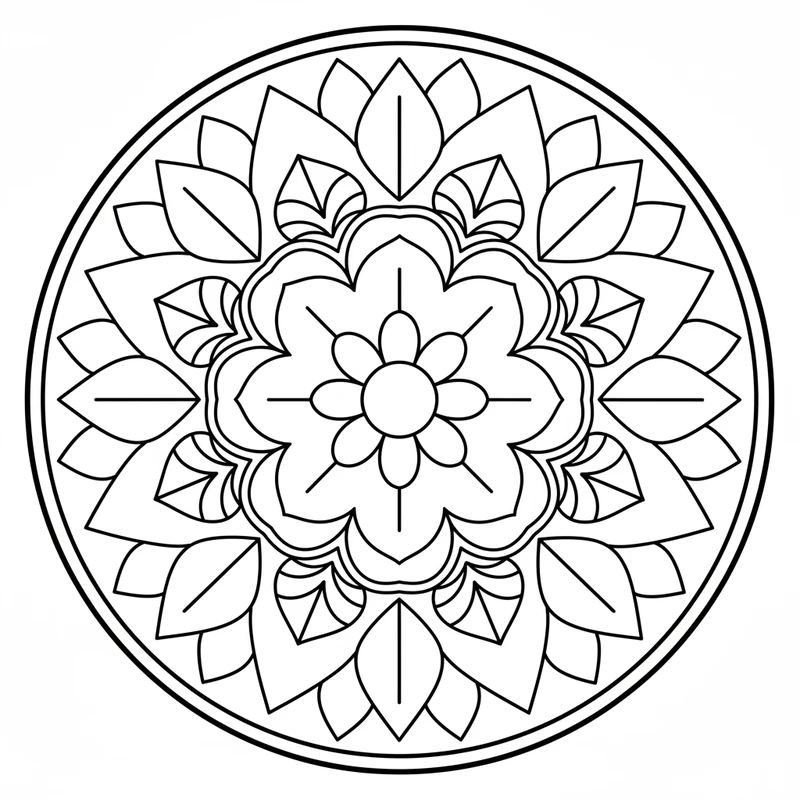 Un magnifique mandala simple aux motifs accessibles, conçu pour offrir un moment de calme et de créativité. Les formes géométriques basiques créent une harmonie visuelle apaisante, idéale pour une pause détente après une journée chargée.