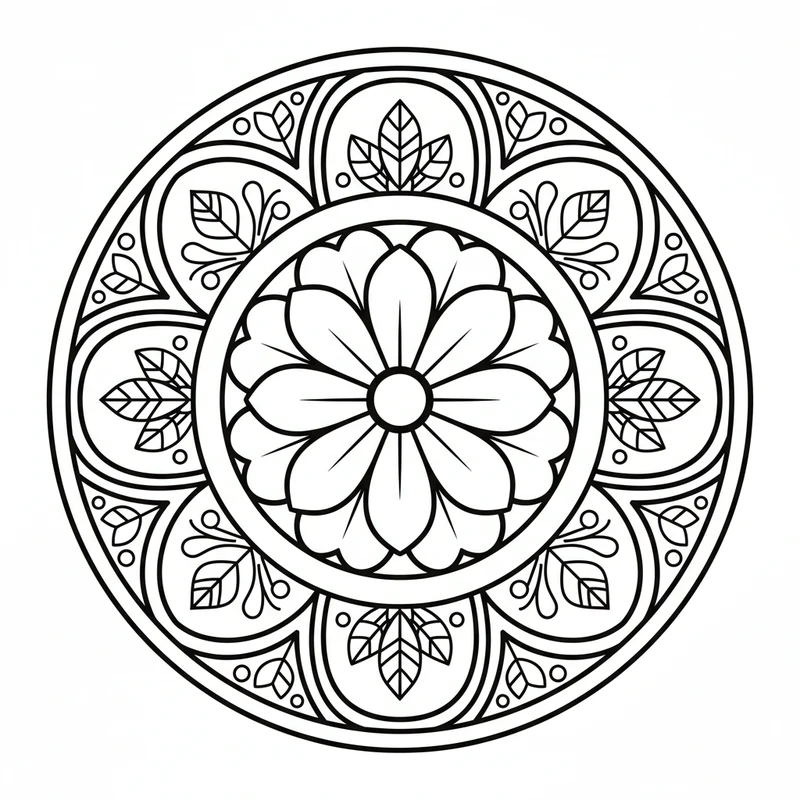 Découvrez ce mandala facile à colorier, idéal pour les débutants et les enfants. Ses grandes zones et ses formes simples permettent une prise en main rapide et un moment de détente agréable. Parfait pour s'initier à l'art du coloriage de mandalas.