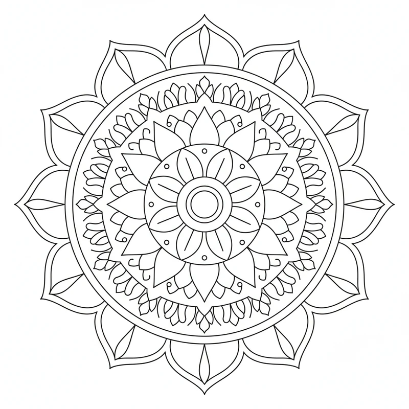 Ce design épuré offre un excellent support pour développer la concentration et la motricité fine. Les lignes claires et les espaces généreux facilitent le coloriage, même pour les plus jeunes. Téléchargez gratuitement ce mandala et profitez d'un moment créatif en famille.
