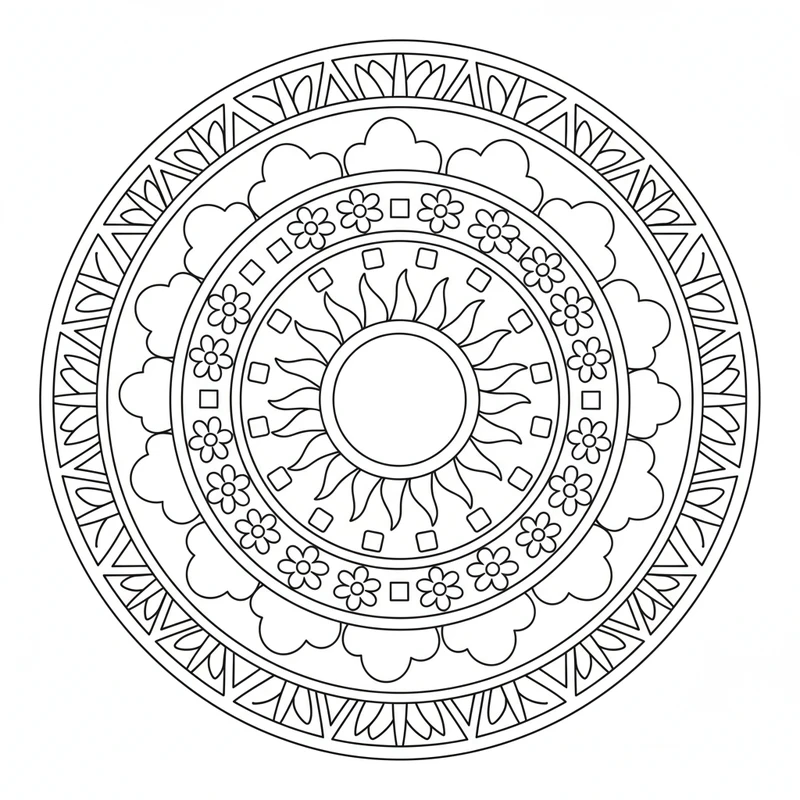 Un magnifique mandala simple aux motifs accessibles, conçu pour offrir un moment de calme et de créativité. Les formes géométriques basiques créent une harmonie visuelle apaisante, idéale pour une pause détente après une journée chargée.