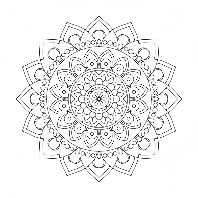 Découvrez ce mandala facile à colorier, idéal pour les débutants et les enfants. Ses grandes zones et ses formes simples permettent une prise en main rapide et un moment de détente agréable. Parfait pour s'initier à l'art du coloriage de mandalas.