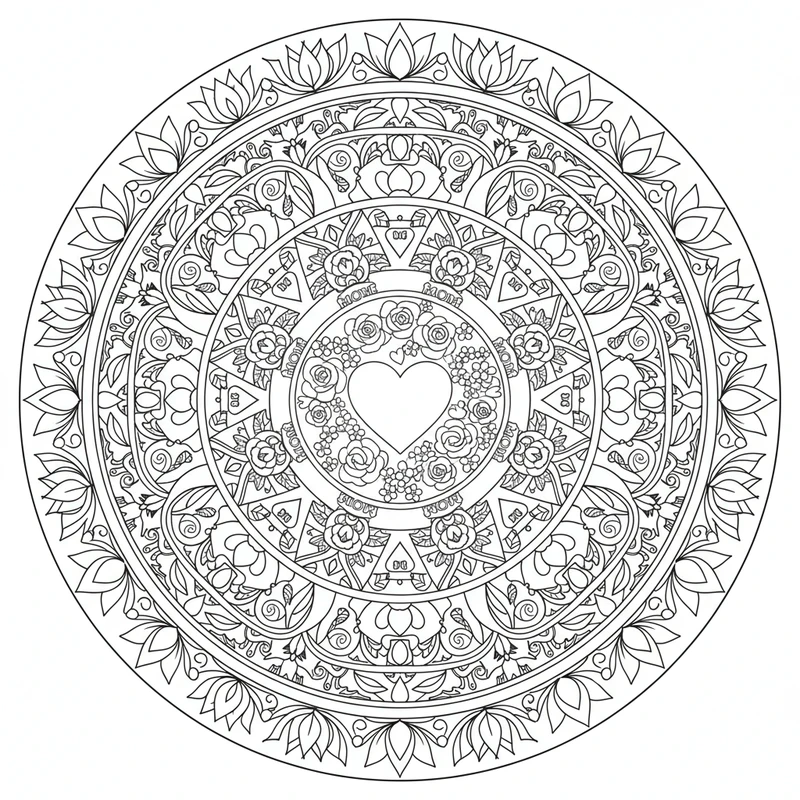 Découvrez ce magnifique mandala fête des mères à colorier. Un design unique inspiré du thème fête des mères, parfait pour un moment de détente et de créativité. Les motifs soigneusement élaborés offrent une expérience de coloriage apaisante.