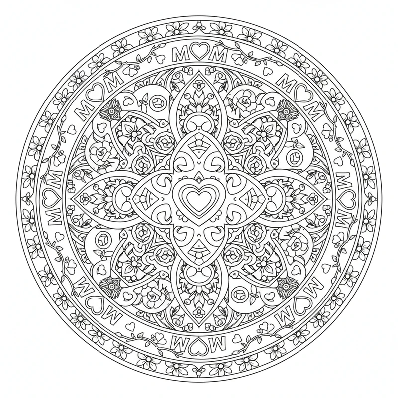 Découvrez ce magnifique mandala fête des mères à colorier. Un design unique inspiré du thème fête des mères, parfait pour un moment de détente et de créativité. Les motifs soigneusement élaborés offrent une expérience de coloriage apaisante.