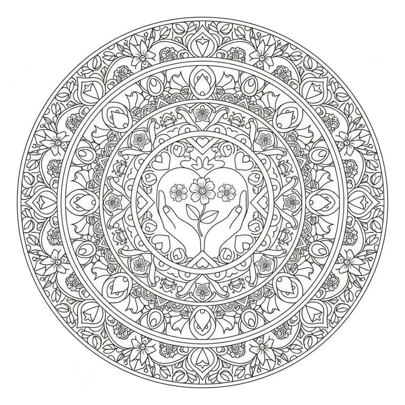 Découvrez ce magnifique mandala fête des mères à colorier. Un design unique inspiré du thème fête des mères, parfait pour un moment de détente et de créativité. Les motifs soigneusement élaborés offrent une expérience de coloriage apaisante.