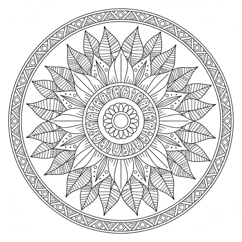 Plongez dans la beauté naturelle avec ce mandala floral aux motifs délicats de fleurs et de pétales. Chaque courbe évoque la grâce des jardins en pleine floraison. Un design parfait pour les amoureux de la nature et du coloriage créatif.