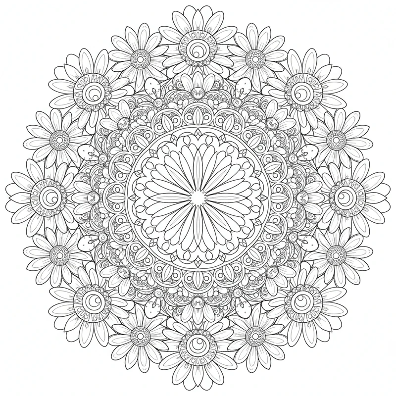 Laissez-vous porter par la beauté végétale de ce design unique. Chaque pétale est une invitation à explorer de nouvelles combinaisons chromatiques. Imprimez gratuitement ce mandala et cultivez votre jardin intérieur.