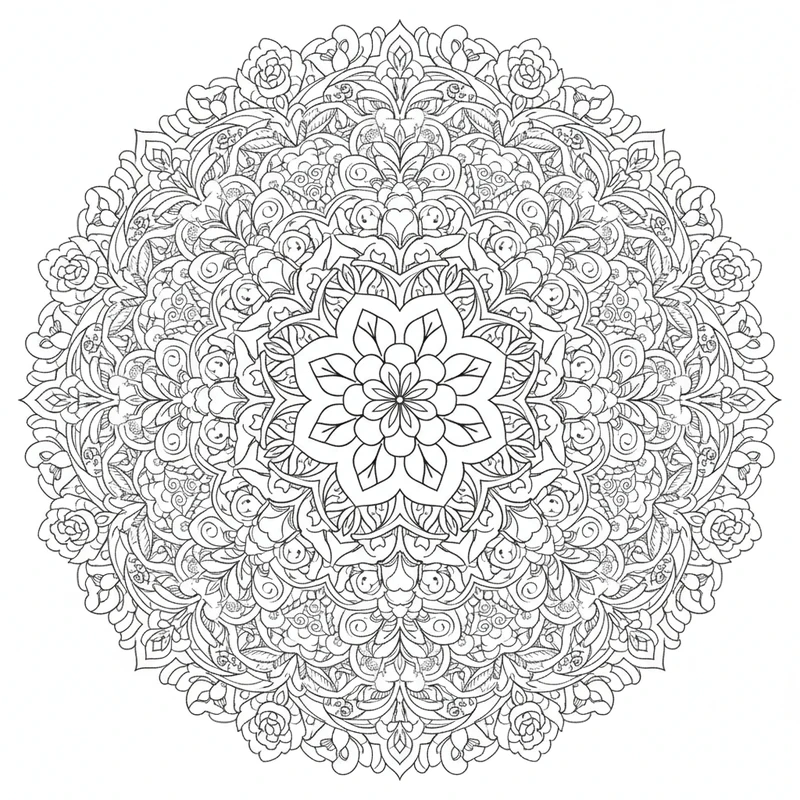 Plongez dans la beauté naturelle avec ce mandala floral aux motifs délicats de fleurs et de pétales. Chaque courbe évoque la grâce des jardins en pleine floraison. Un design parfait pour les amoureux de la nature et du coloriage créatif.