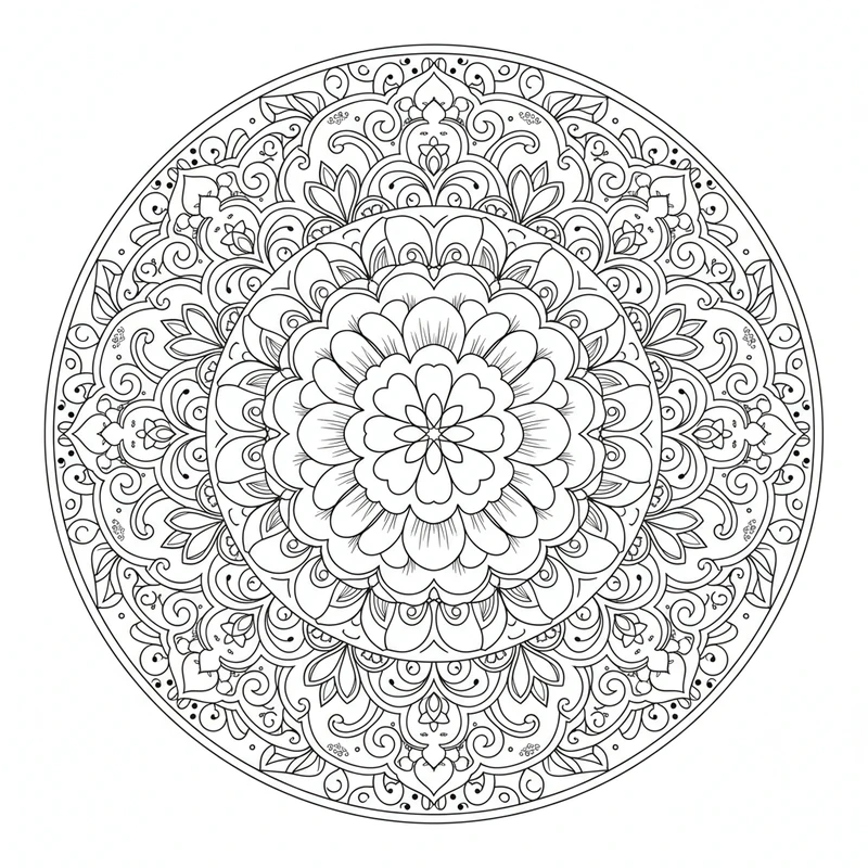 Plongez dans la beauté naturelle avec ce mandala floral aux motifs délicats de fleurs et de pétales. Chaque courbe évoque la grâce des jardins en pleine floraison. Un design parfait pour les amoureux de la nature et du coloriage créatif.