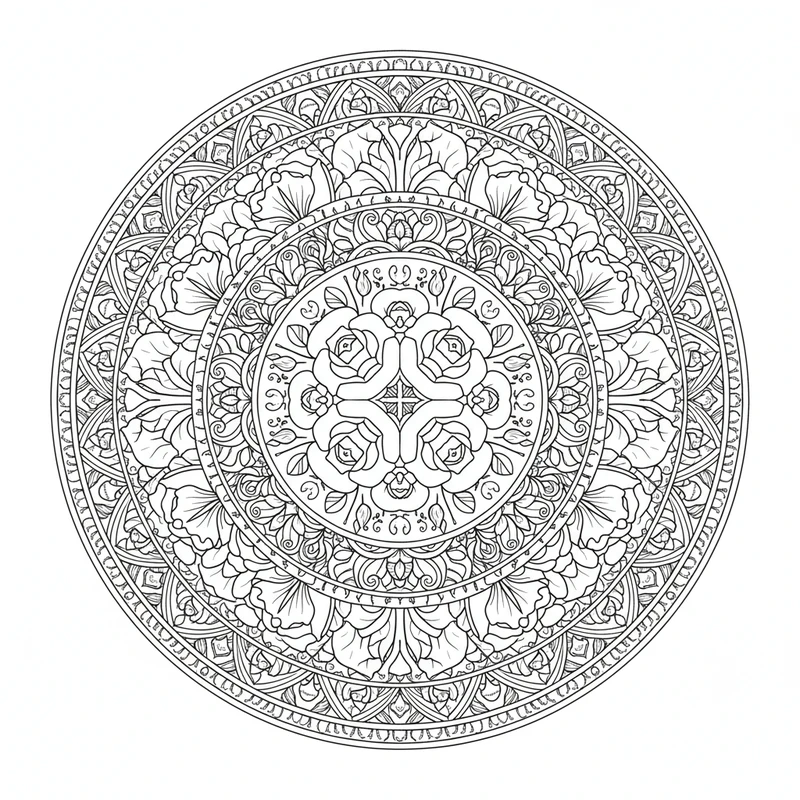 Plongez dans la beauté naturelle avec ce mandala floral aux motifs délicats de fleurs et de pétales. Chaque courbe évoque la grâce des jardins en pleine floraison. Un design parfait pour les amoureux de la nature et du coloriage créatif.