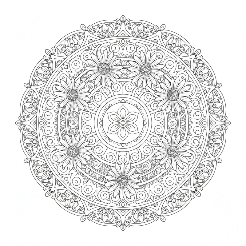 Laissez-vous porter par la beauté végétale de ce design unique. Chaque pétale est une invitation à explorer de nouvelles combinaisons chromatiques. Imprimez gratuitement ce mandala et cultivez votre jardin intérieur.