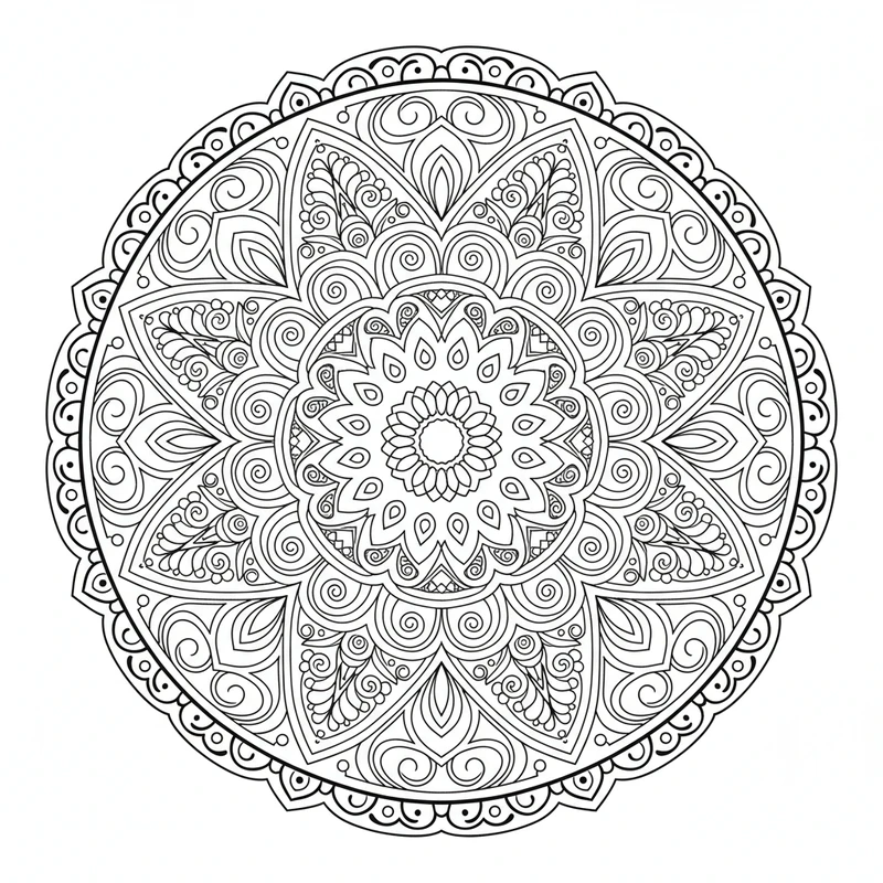 Les motifs répétitifs de ce mandala créent un effet hypnotique propice à la méditation profonde. Chaque forme s'imbrique parfaitement dans l'ensemble, offrant un défi créatif stimulant. Téléchargez gratuitement ce coloriage pour une expérience zen unique.