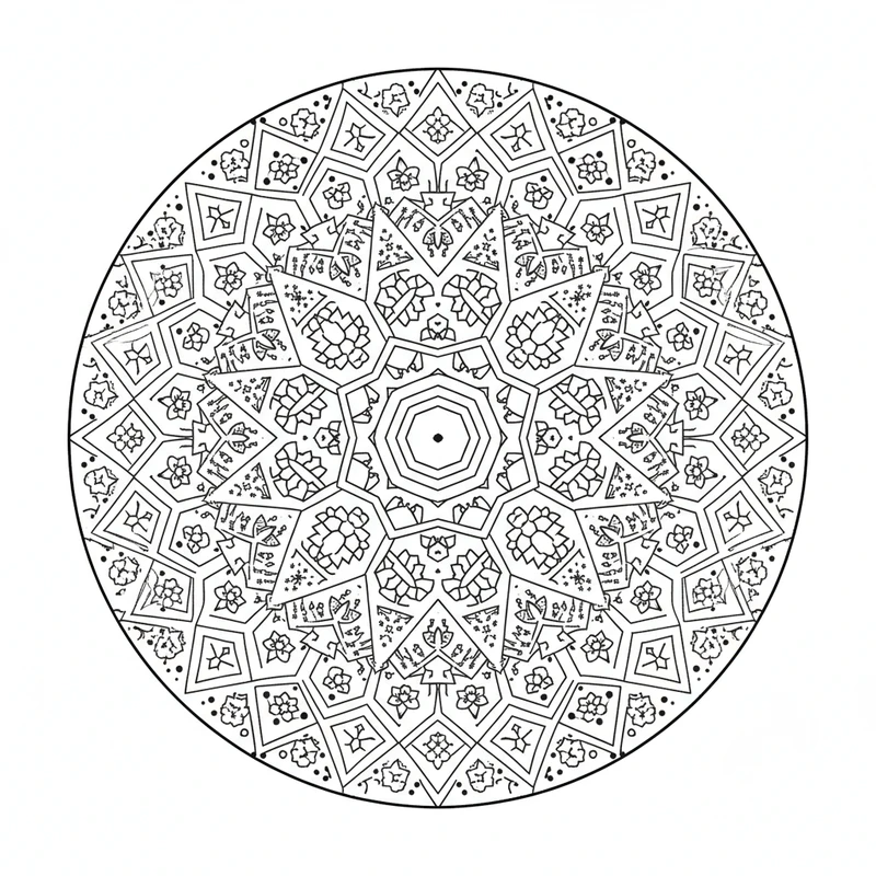 Explorez la perfection mathématique avec ce mandala géométrique aux symétries fascinantes. Inspiré de la géométrie sacrée, ce design combine cercles, triangles et hexagones dans une harmonie visuelle captivante.