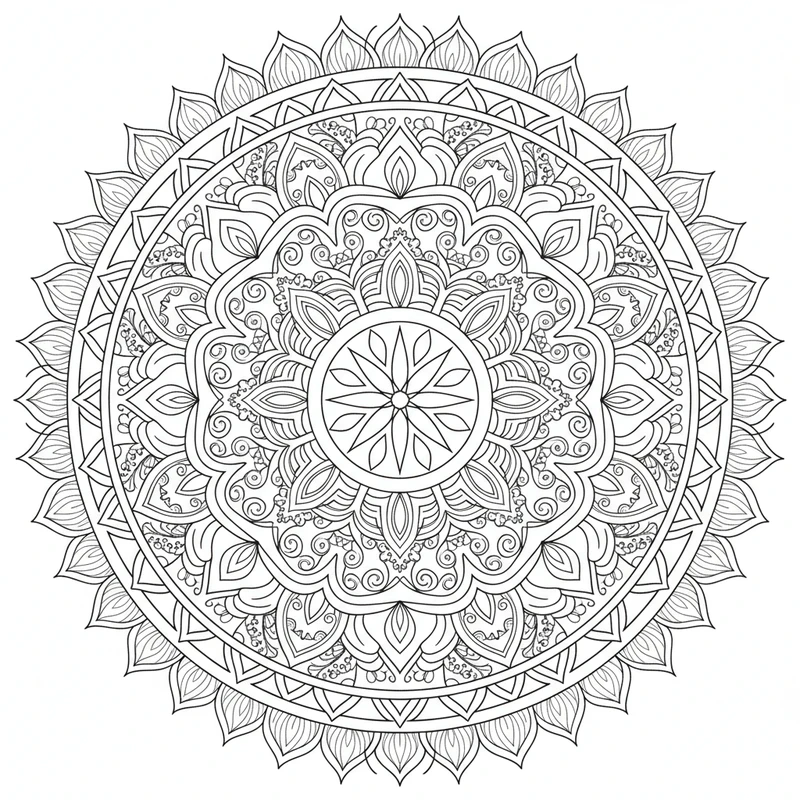 Ce mandala aux formes géométriques précises invite à un voyage au cœur de l'ordre et de la beauté mathématique. Les lignes nettes et les symétries multiples offrent un support de coloriage sophistiqué pour les amateurs de précision.