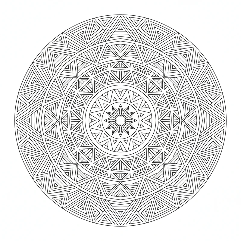 Ce mandala aux formes géométriques précises invite à un voyage au cœur de l'ordre et de la beauté mathématique. Les lignes nettes et les symétries multiples offrent un support de coloriage sophistiqué pour les amateurs de précision.