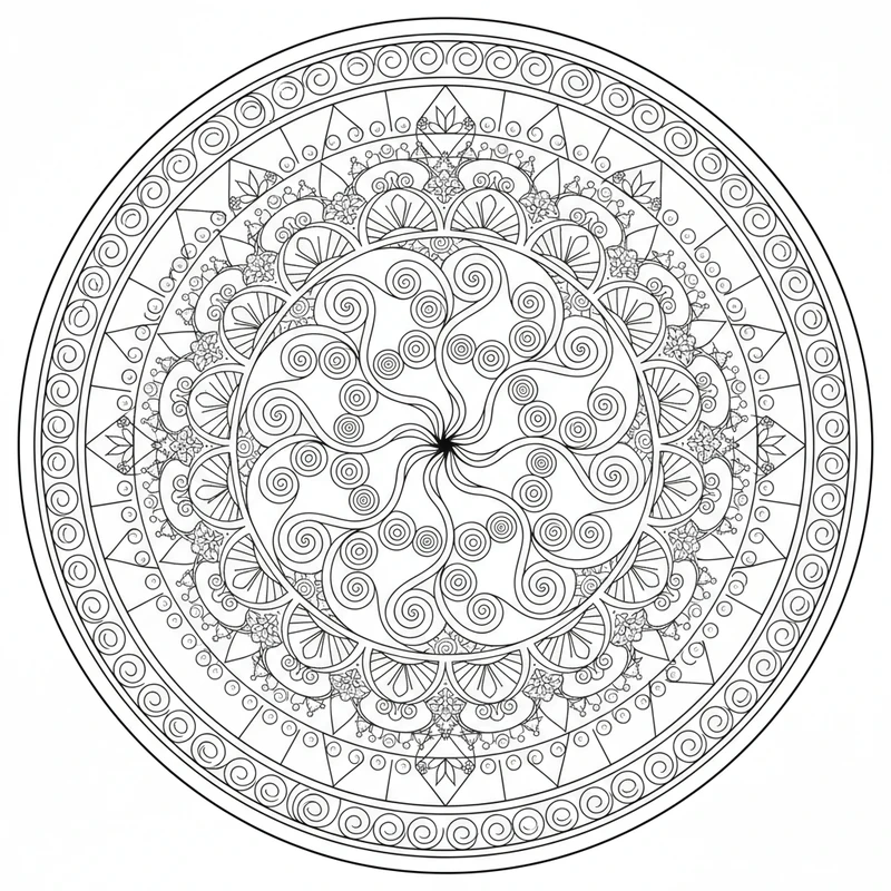 Les motifs répétitifs de ce mandala créent un effet hypnotique propice à la méditation profonde. Chaque forme s'imbrique parfaitement dans l'ensemble, offrant un défi créatif stimulant. Téléchargez gratuitement ce coloriage pour une expérience zen unique.