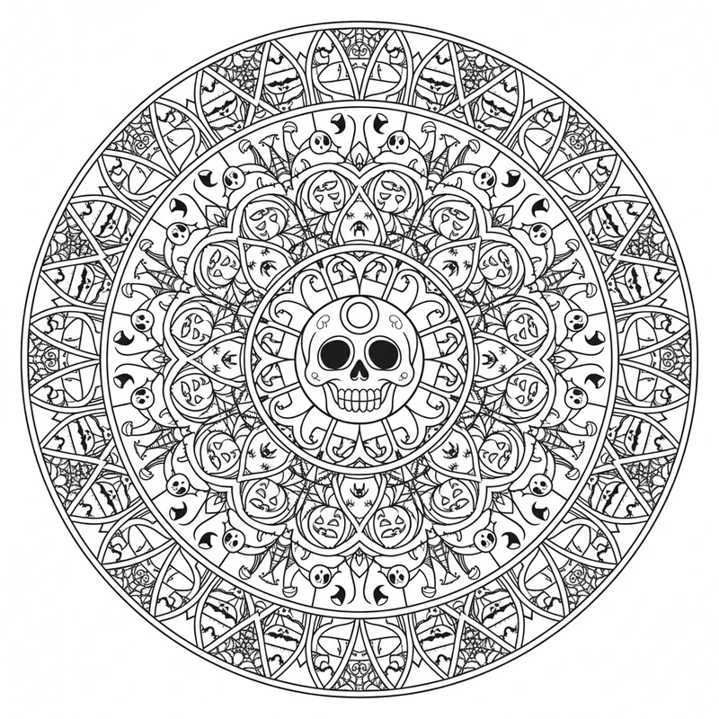 Ce mandala halloween est idéal pour réduire le stress et stimuler votre imagination. Téléchargez gratuitement ce coloriage et laissez-vous transporter par la beauté de ce design halloween. Parfait pour adultes et enfants.