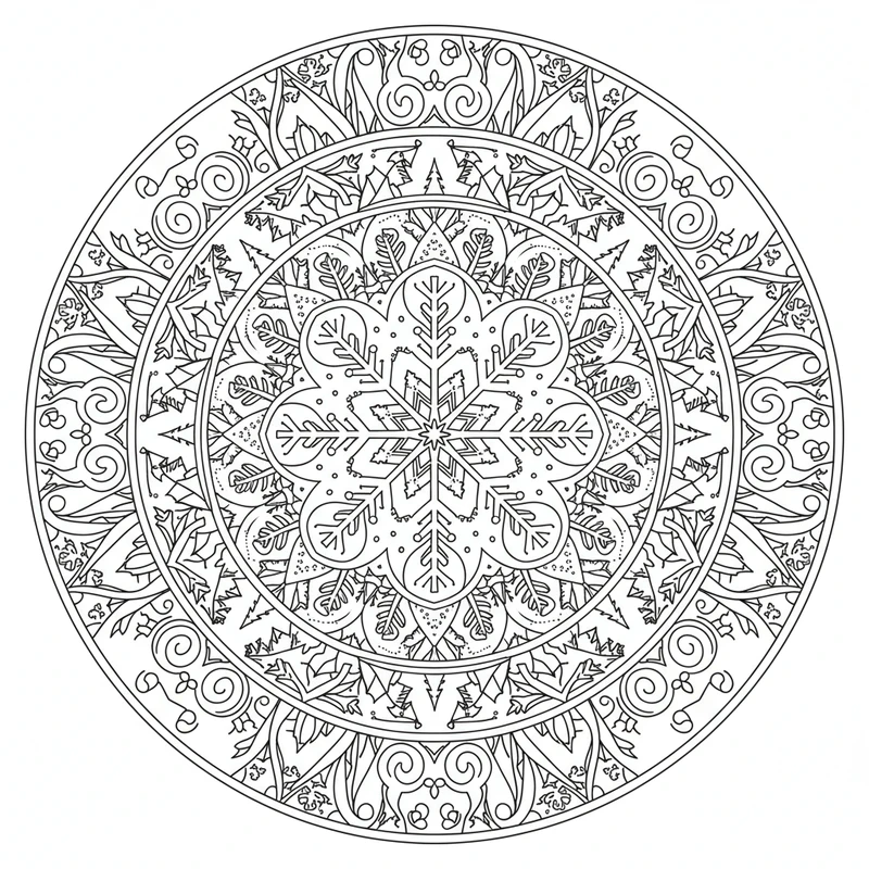 Ce mandala hiver est idéal pour réduire le stress et stimuler votre imagination. Téléchargez gratuitement ce coloriage et laissez-vous transporter par la beauté de ce design hiver. Parfait pour adultes et enfants.
