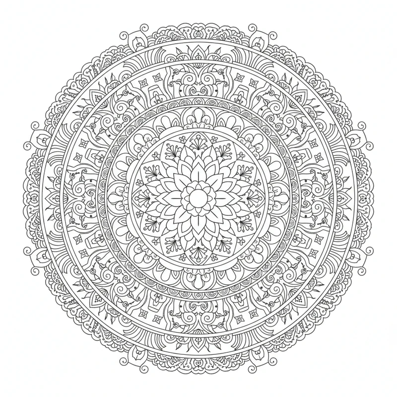Ce mandala indien est idéal pour réduire le stress et stimuler votre imagination. Téléchargez gratuitement ce coloriage et laissez-vous transporter par la beauté de ce design indien. Parfait pour adultes et enfants.