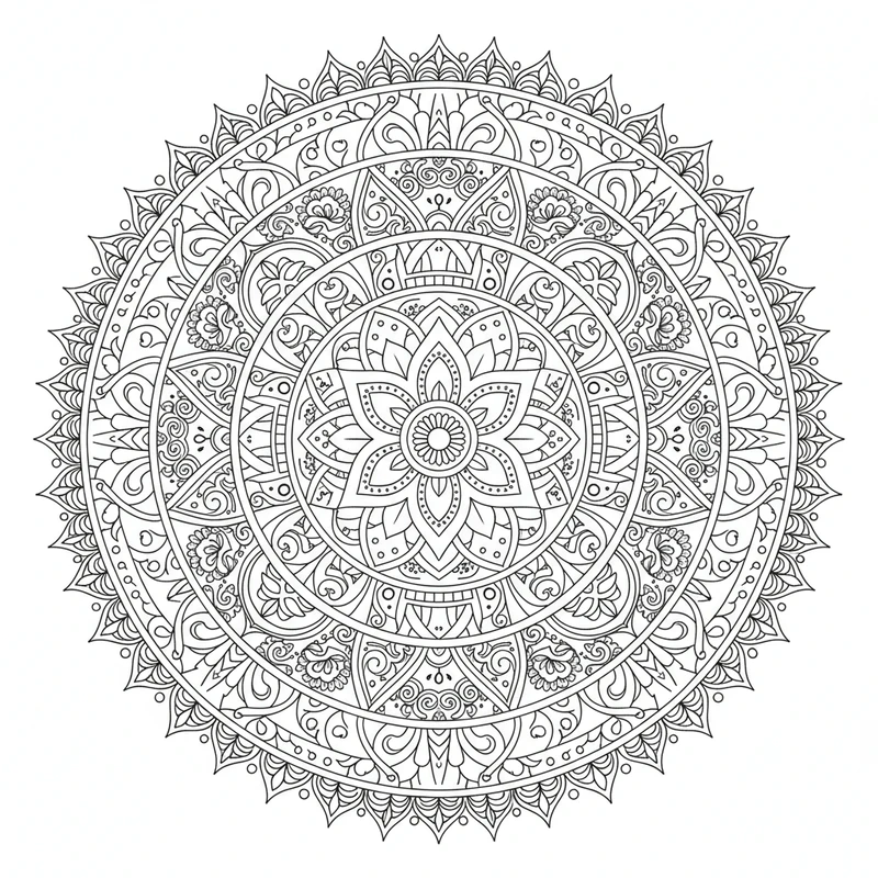 Ce mandala indien est idéal pour réduire le stress et stimuler votre imagination. Téléchargez gratuitement ce coloriage et laissez-vous transporter par la beauté de ce design indien. Parfait pour adultes et enfants.