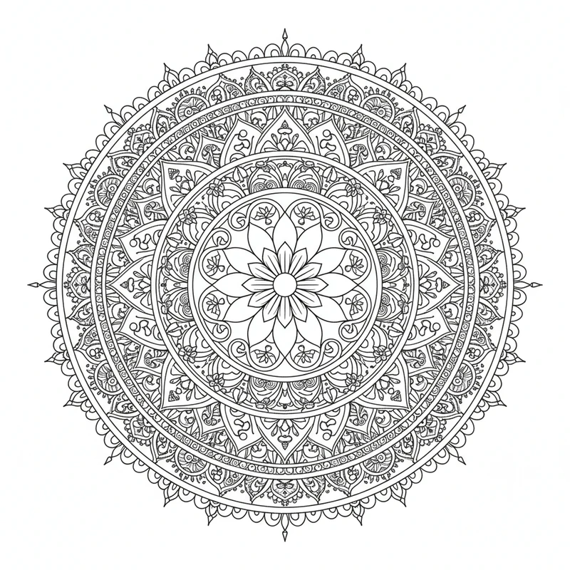 Ce mandala indien est idéal pour réduire le stress et stimuler votre imagination. Téléchargez gratuitement ce coloriage et laissez-vous transporter par la beauté de ce design indien. Parfait pour adultes et enfants.