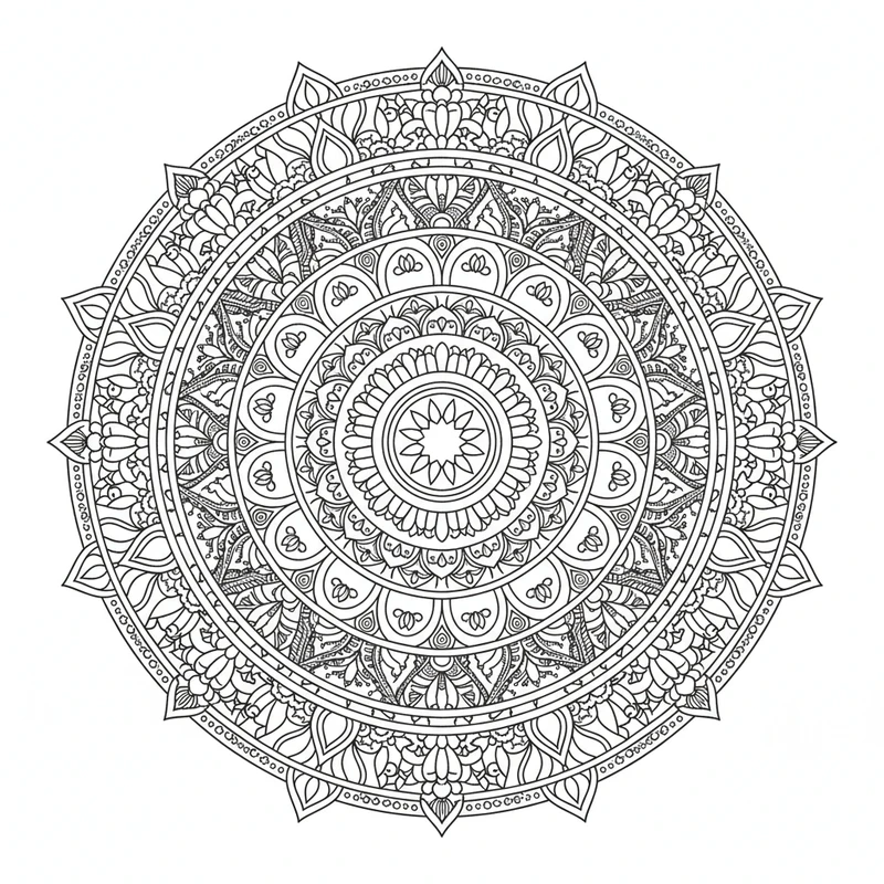 Ce mandala indien est idéal pour réduire le stress et stimuler votre imagination. Téléchargez gratuitement ce coloriage et laissez-vous transporter par la beauté de ce design indien. Parfait pour adultes et enfants.