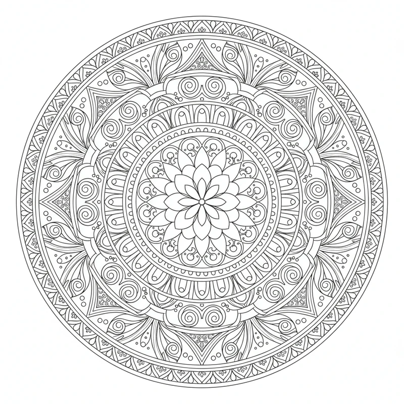 Ce mandala indien est idéal pour réduire le stress et stimuler votre imagination. Téléchargez gratuitement ce coloriage et laissez-vous transporter par la beauté de ce design indien. Parfait pour adultes et enfants.