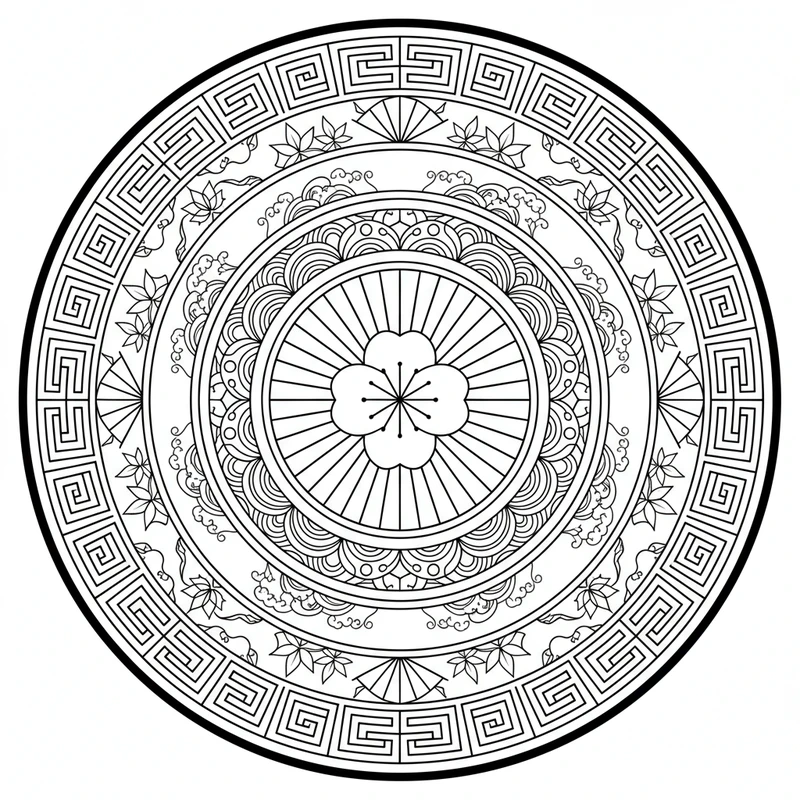 Découvrez ce magnifique mandala japonais à colorier. Un design unique inspiré du thème japonais, parfait pour un moment de détente et de créativité. Les motifs soigneusement élaborés offrent une expérience de coloriage apaisante.
