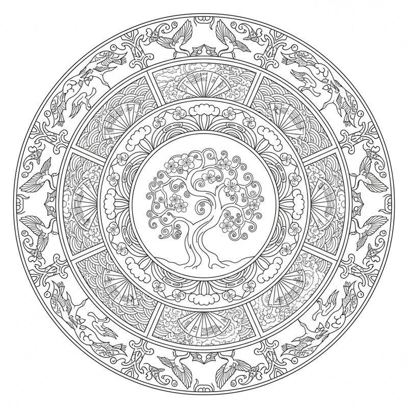 Découvrez ce magnifique mandala japonais à colorier. Un design unique inspiré du thème japonais, parfait pour un moment de détente et de créativité. Les motifs soigneusement élaborés offrent une expérience de coloriage apaisante.
