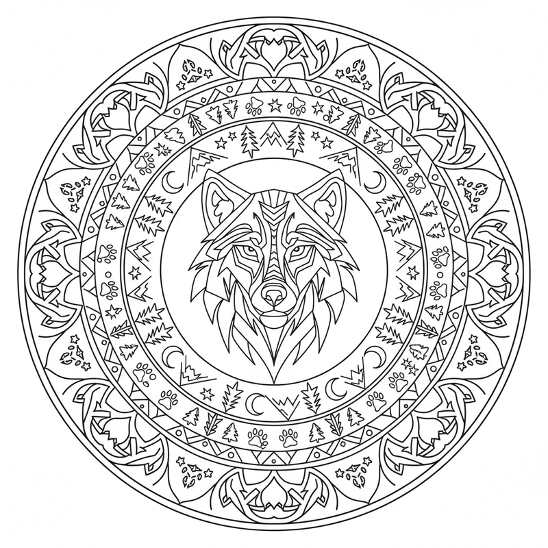 Découvrez ce magnifique mandala loup à colorier. Un design unique inspiré du thème loup, parfait pour un moment de détente et de créativité. Les motifs soigneusement élaborés offrent une expérience de coloriage apaisante.