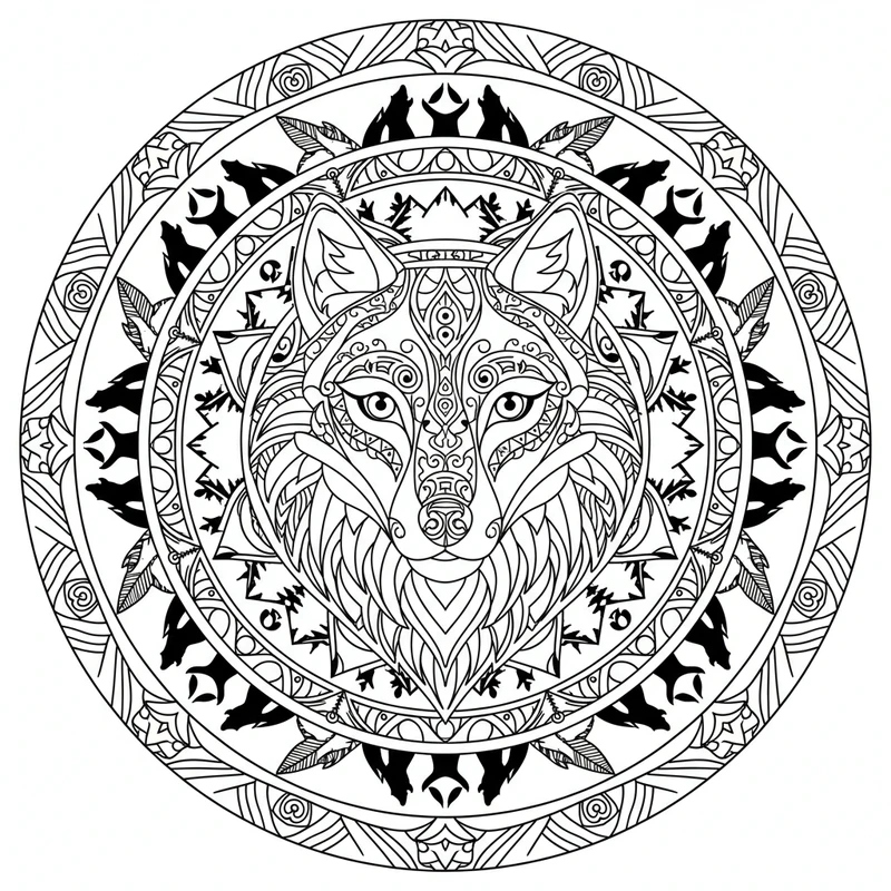 Découvrez ce magnifique mandala loup à colorier. Un design unique inspiré du thème loup, parfait pour un moment de détente et de créativité. Les motifs soigneusement élaborés offrent une expérience de coloriage apaisante.