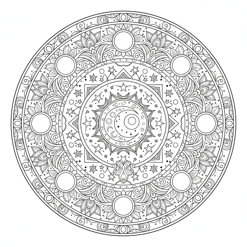Ce mandala lune est idéal pour réduire le stress et stimuler votre imagination. Téléchargez gratuitement ce coloriage et laissez-vous transporter par la beauté de ce design lune. Parfait pour adultes et enfants.