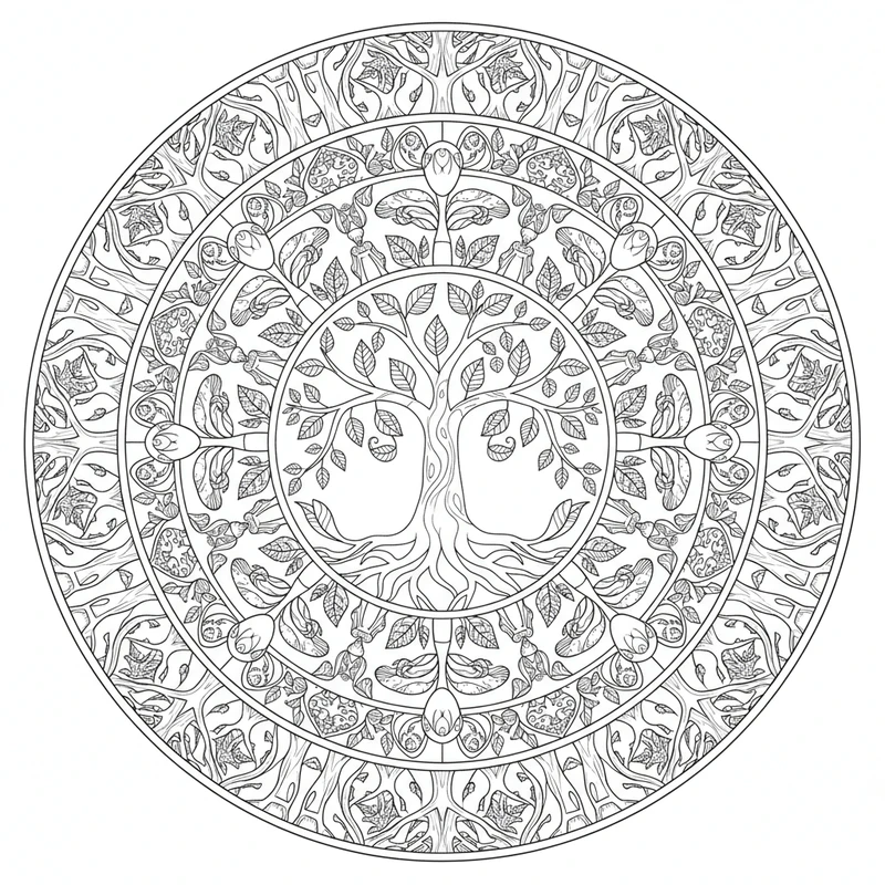 Enchanté Forêt Mandala #20 - Coloriage Gratuit